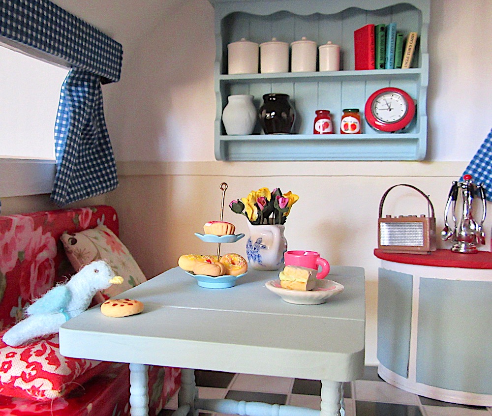 Oh my goodness!!!! Never has the watching of paint dry been so fascinating, Janine. I am sitting here, with my husband, and we are both transfixed as to the details of each and every element for all the world to see, inside Granny Square’s caravan. Why, I want to reach into my screen and ‘pinch’ one of those delectable cupcakes. Me thinks the strawberry iced one, if you please. I have no doubt that the putting together of each and every element was no simple task! Quite simply astounding! Gosh, you are a clever lady, Janine.