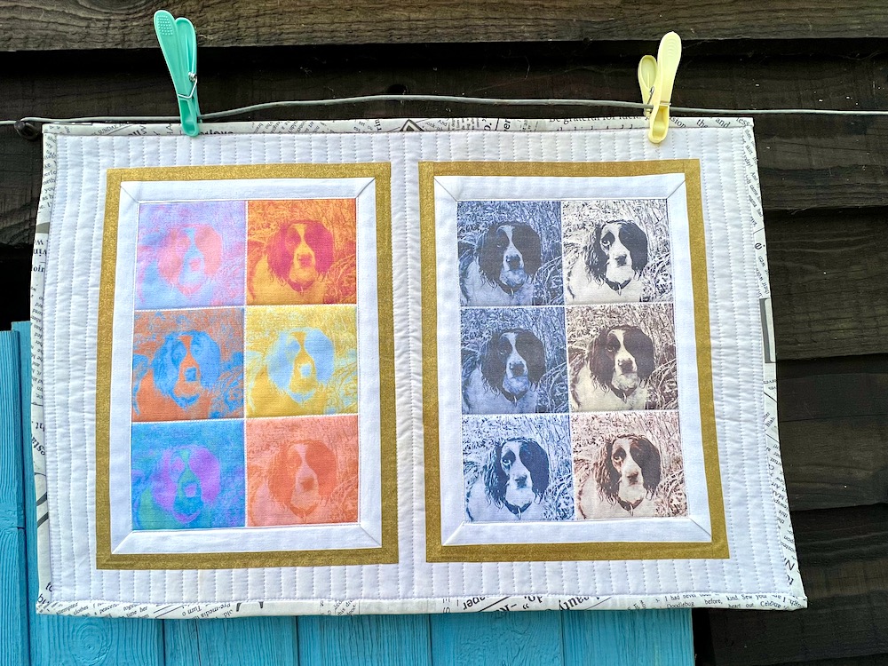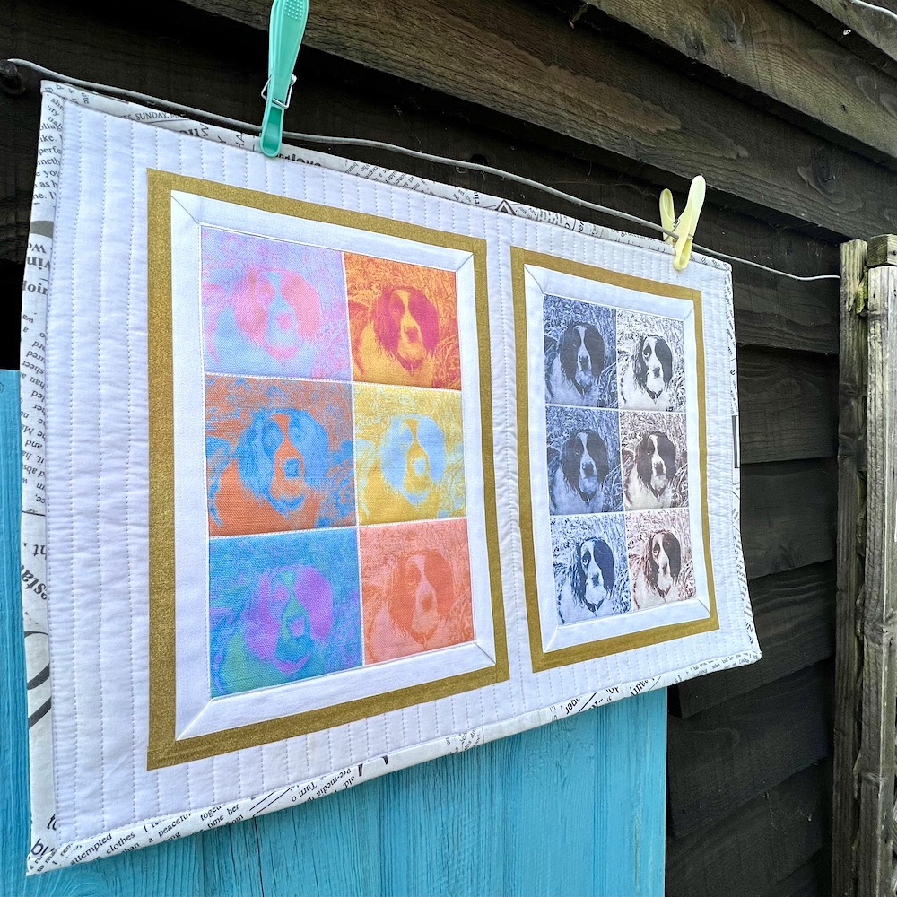 After that, I put together a more monochrome gallery because I thought I would call the piece The Poppy Diptych and I printed both onto fabric before realising that she gets called ‘Pop’ all the time and ‘Pop Art’ would also work as a name and an adjective. I don’t think I’ve ever managed to come up with a name for a quilt before so, in the end, I decided to keep both!