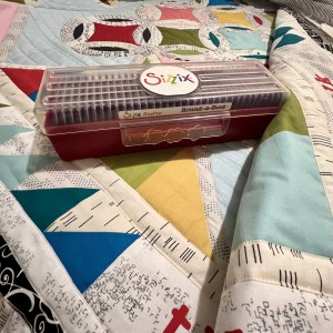 Luckily I have a box of secondhand sizzix letters so I was able to iron fusible web onto fabric, cut the letters and iron them onto the quilt.