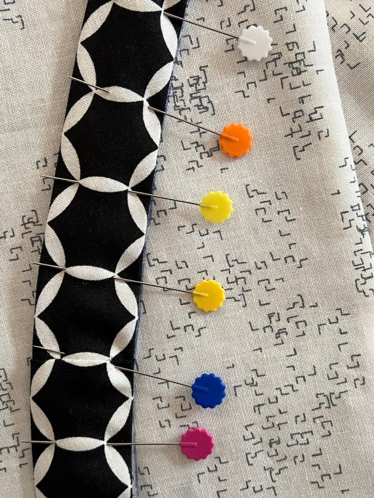 In the end, I found a bag of hexies from long ago, which I might be able to use for a border or something and made a strip of binding to turn it into a circle. The binding circle is yet to be sewn on the outer edge so I will trim the white and stitch it down to get a square, maybe in the next round…