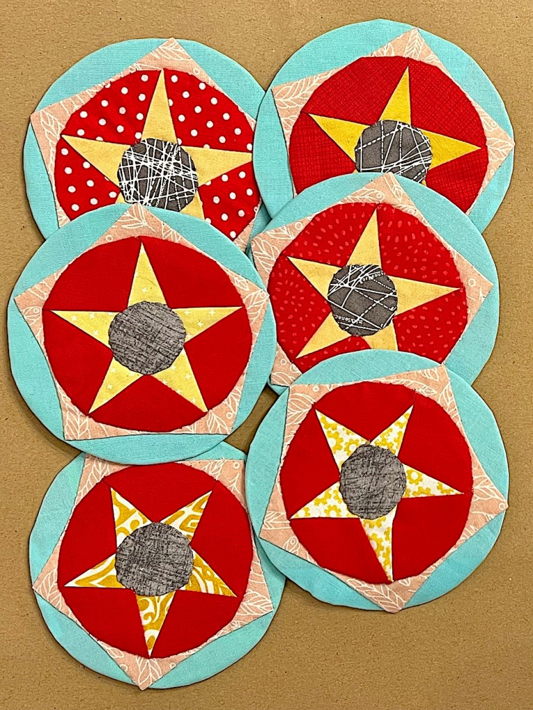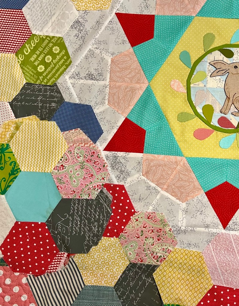 Oh, I love those little stars, and don’t you love it when you find something in your stash like hexies that will work in this quilt! How cool is that?!