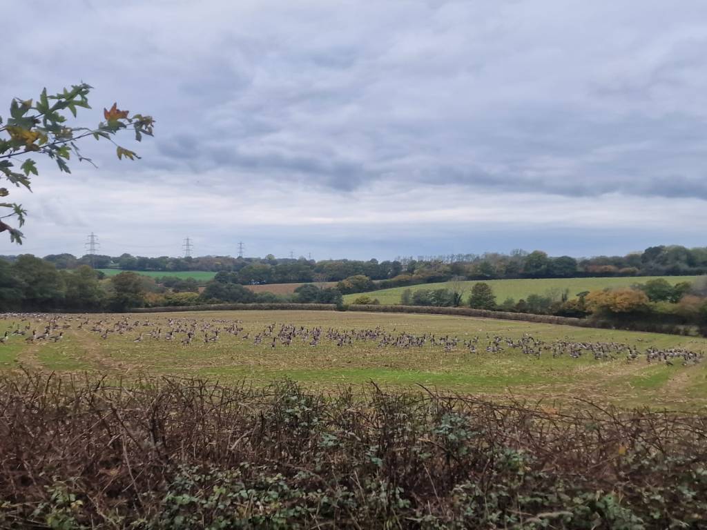 In case you are wondering about the geese in the photos, they are everywhere! They’ve been an amazing sight flying back and forth over us lately. Sometimes they fly so low you can hear their wings beating. I don’t know whether they are massing to migrate or staying for the Winter but it’s lovely to see them. We’ve never had anything remotely like this number before!