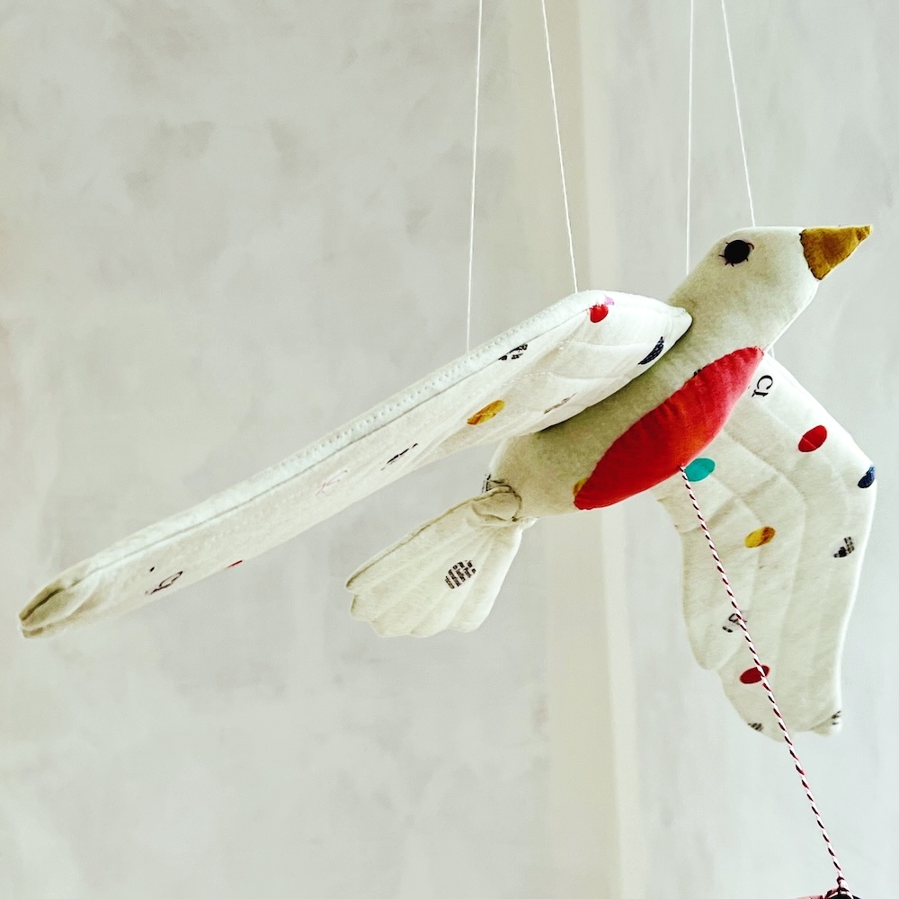 I used Carrie Bloomston Collage fabric and, having planned a lot more artiness and embellishment, I eventually decided she had enough colour and pattern without adding anything else.