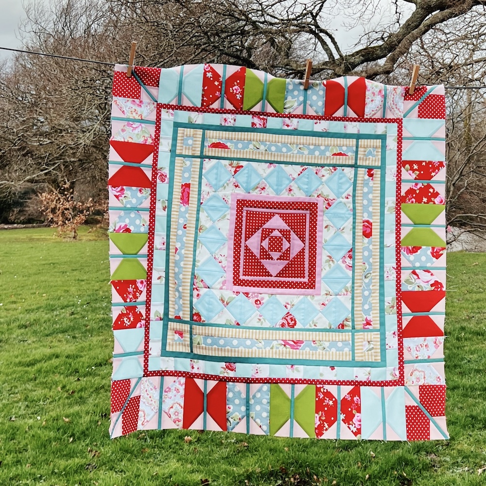 And for Round 4 – Curves, I have added some applique semi-circles to create a scalloped effect around my centre block.