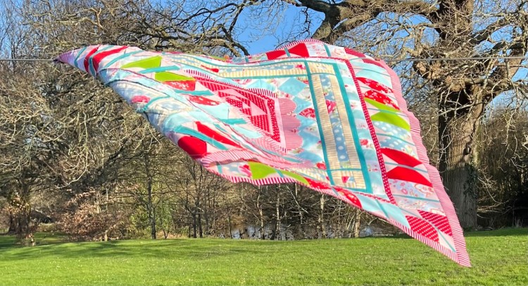 I love what you did for the curve prompt! Your fabric is so festive and fun, this is such a happy quilt!