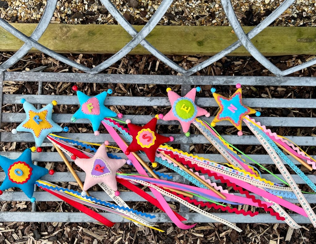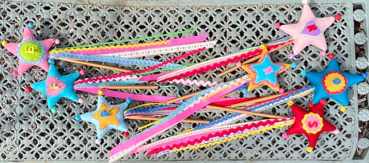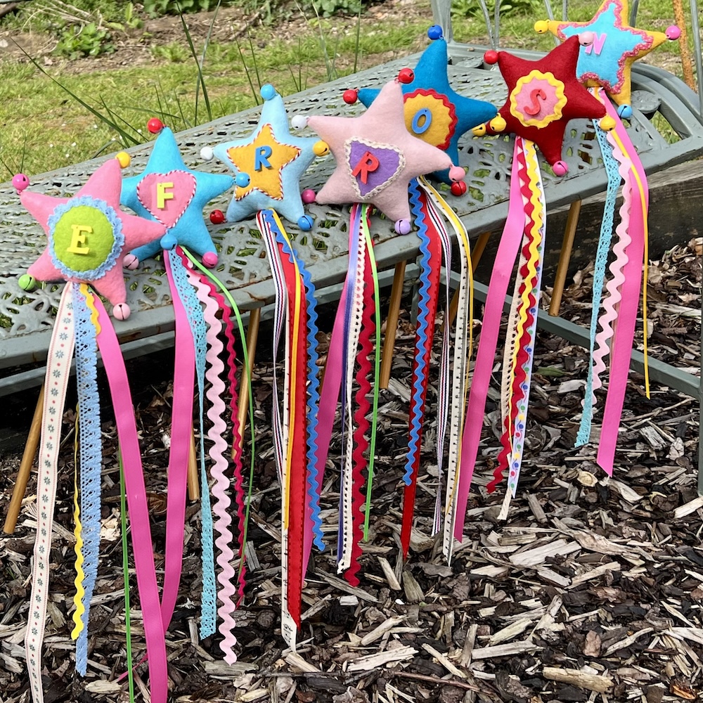 At last I have a little ta-da – the seven magical wands now have bells and ribbons.