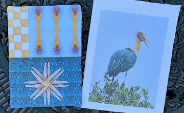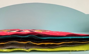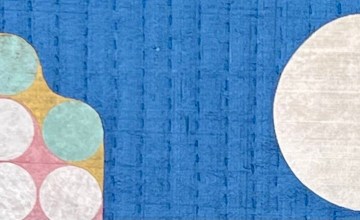 A fabric illustration using silk scraps on the theme of circles and squares…